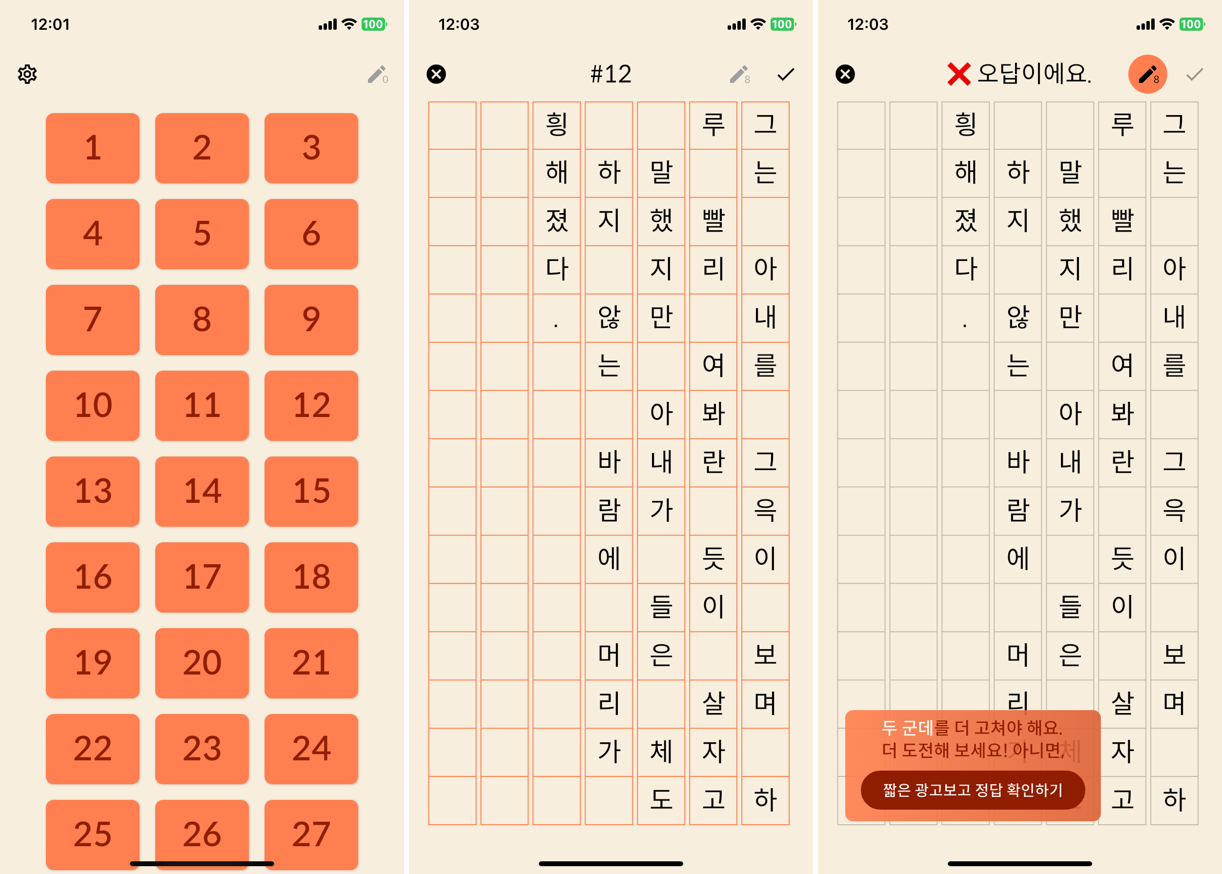 극악의 난도를 자랑하는 한글 띄어쓰기 문제들을 풀어보며 우리말 맞춤법을 학습할 수 있는 앱입니다.