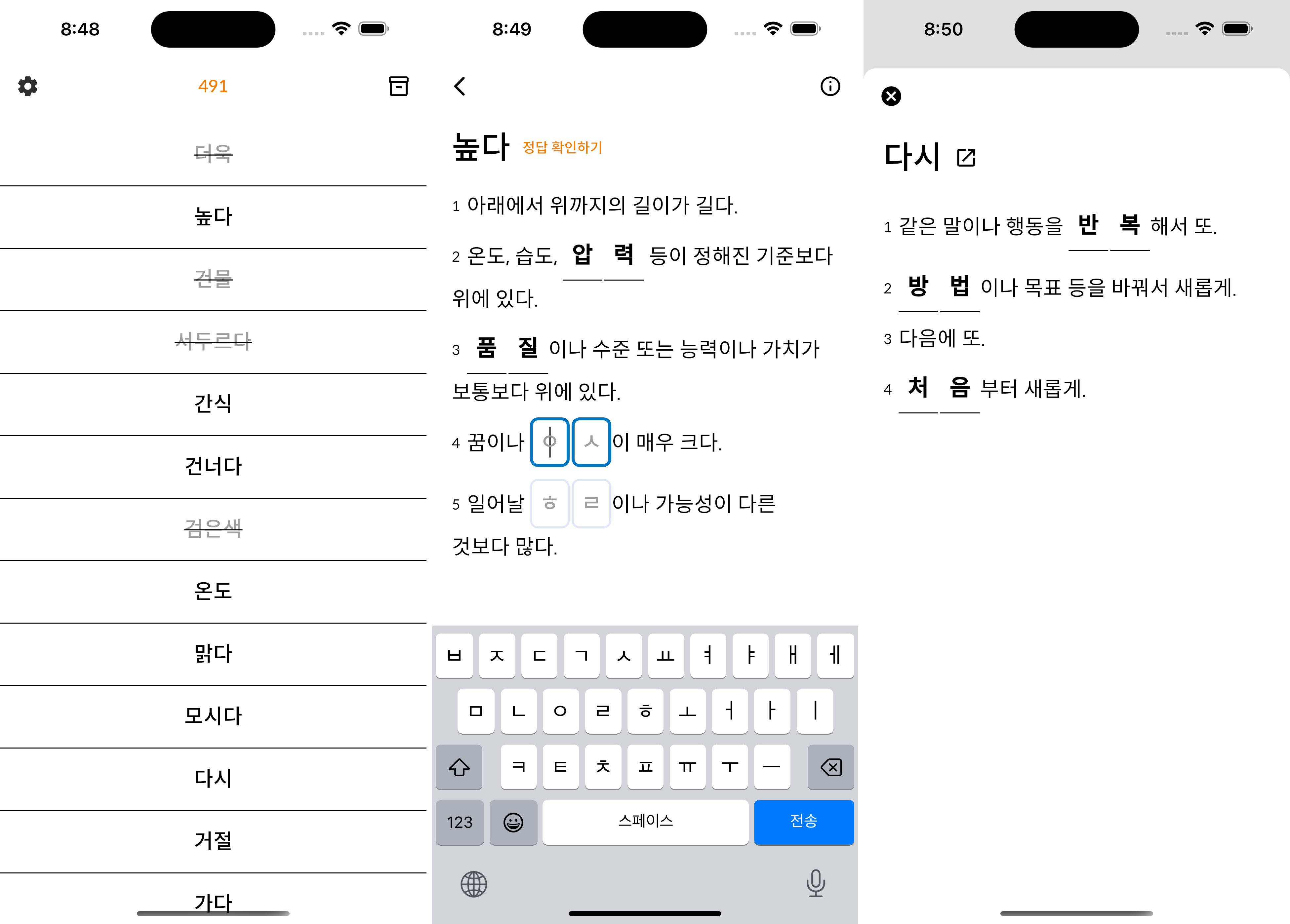 문어 선생님 앱은 사전 나와 있는 단어의 뜻을 완성하는 게임입니다.